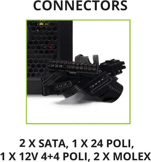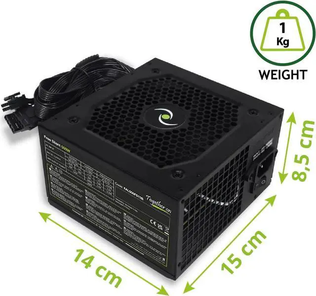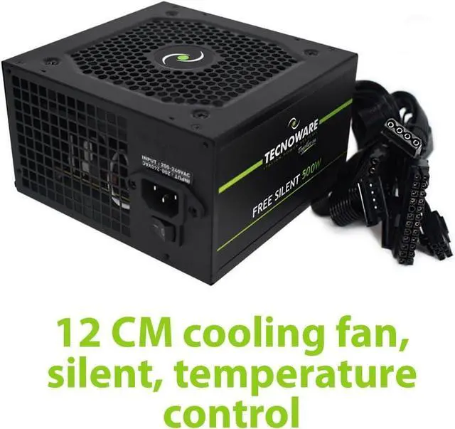 REAL POWER Internal power supply for personal computers, 500 Watts of pure and filtered power. Dimensions L 14 x P 15 x H 8.5 cm and weight 1.0 Kg.
