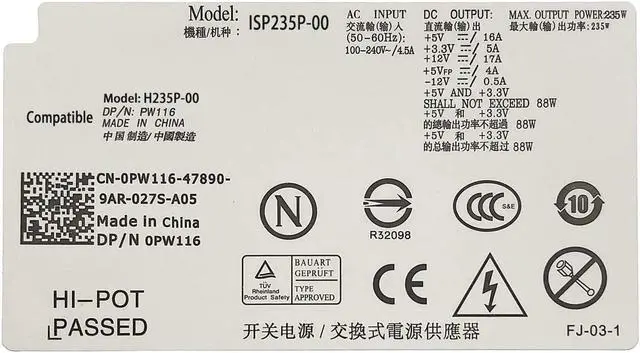 Compatible P/N: PW116, FR610, RM112, 67T67, R224M, WU136