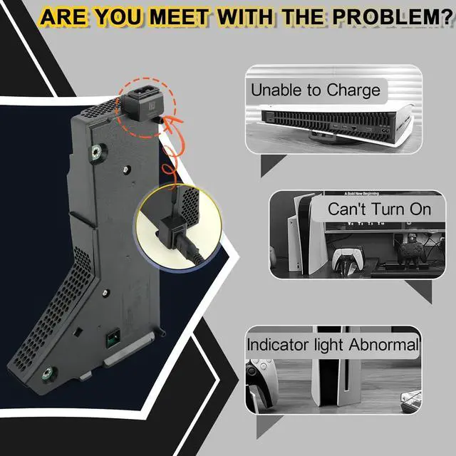 Replacement Application: When for PS5 console meet with the problem of cant turn on/suddenly shuts down/power indicator light is abnormal/unable to charge or provide power,etc. Replace the new power supply for PS5 ADP-400FR, which will help to solve the problem and make the console normal to use
