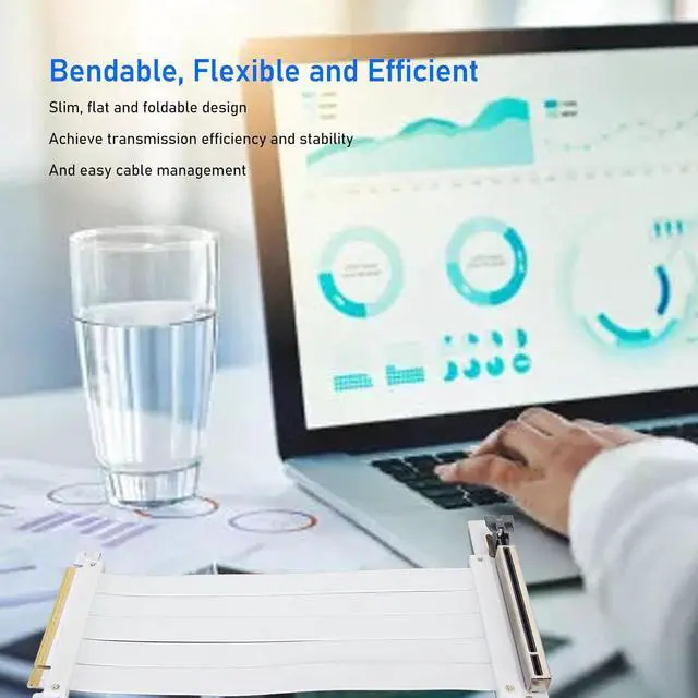 **BENDABLE, FLEXIBLE AND EFFICIENT**: The PCIE 4.0 Riser Cable boasts a slim, flat, and foldable design, enhancing transmission efficiency and stability. With an impressive transfer rate of 128Gbps, it simplifies cable management without compromising performance.