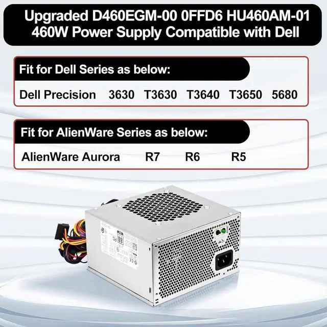 Compatibility460W 0FFD6 Power Supply, HU460AM-01 Power Supply Compatible with Dell Precision 3630 T3630 T3640 T3650 5680 and Alien-Ware Aurora R7 R6 R5 power supply.