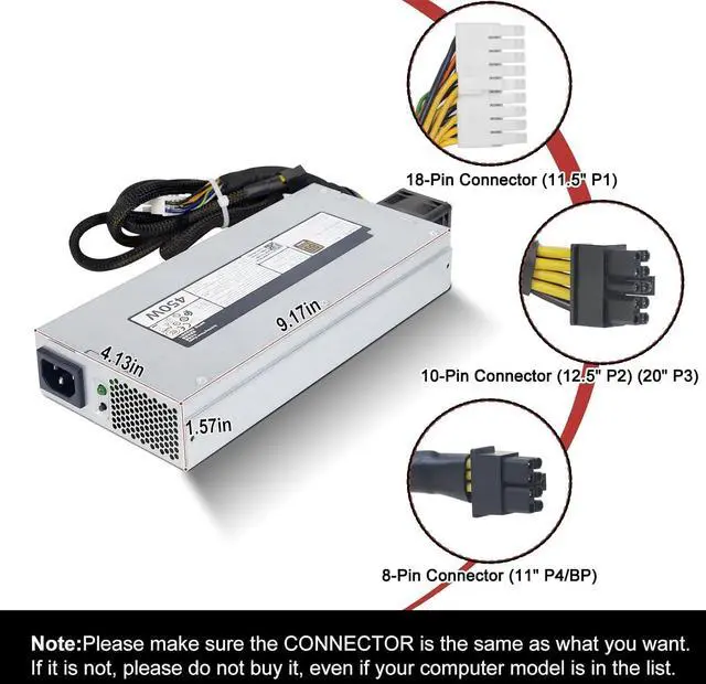 Input & OutputInput: 100-240V~50/60Hz; Max Current: 6.5A-3.5A. Output: +12.2V-36.89A; +12Vsb-3.0A. Connectors: (1) 18-Pin Connector X1 (2) 10-Pin Connector X2 (3) 8-Pin Connector X1