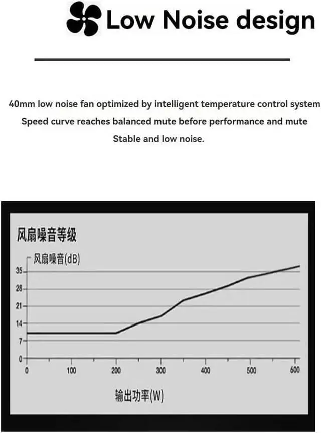 Low Noise Design: Optimized by intelligent temperature control system, the speed curve is balanced between performance and silence