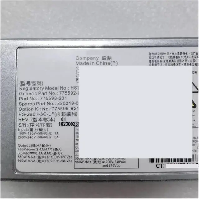 775595-B21 775592-001 830219-001 830219-001 DL20 G9 160 Gen9 900W Power Supply HSTNS-PL48 B