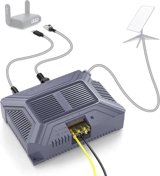The power adapter delivers 180W output with a 5 in 1 conversion set, ensuring uninterrupted power supply and Gigabit speed connection for satellite dishes