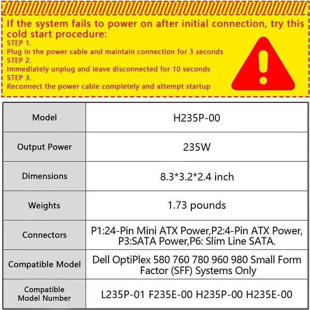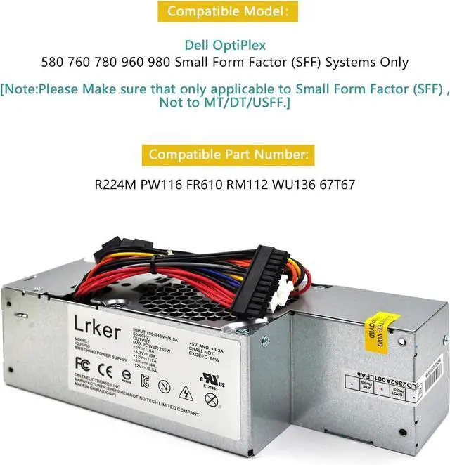 Compatible Model: Dell OptiPlex 580 760 780 960 980 Small Form Factor (SFF) Systems Only [Note:Please Make sure that only applicable to Small Form Factor (SFF)