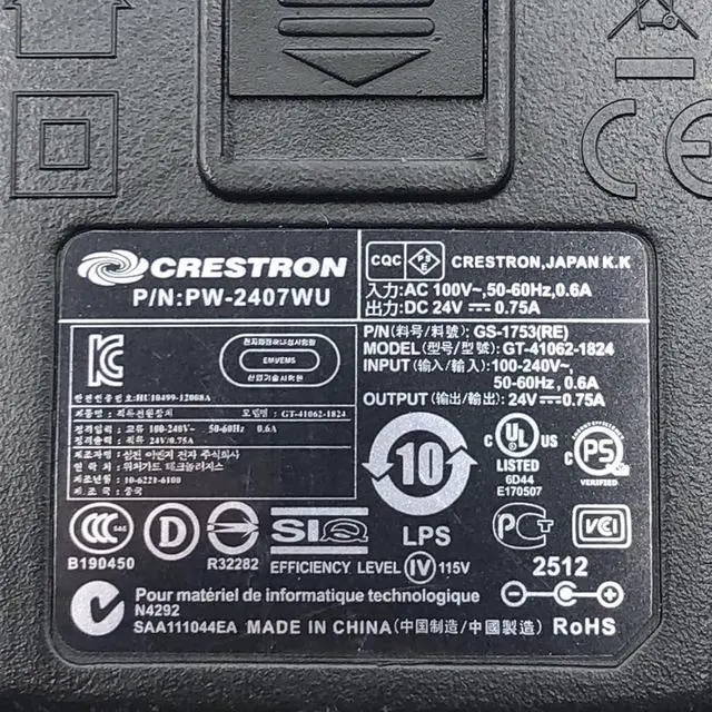 24 Volts DC, 0.75 Amps, Regulated 100-240 Volts AC, 50/60 Hz Attached 6 ft (1.8 m) cable with 2.1mm barrel-type DC power plug, male Ungrounded AC power plug, line power input; Type selectable via region-specific adapter insert