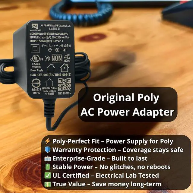 Authentic HP Poly Accessory: 85W94AA#ABA DC-5V Charger. Engineered for seamless integration, this accessory allows you to simply plug it in and use it with confidence, knowing that it will provide consistent and reliable performance every time.