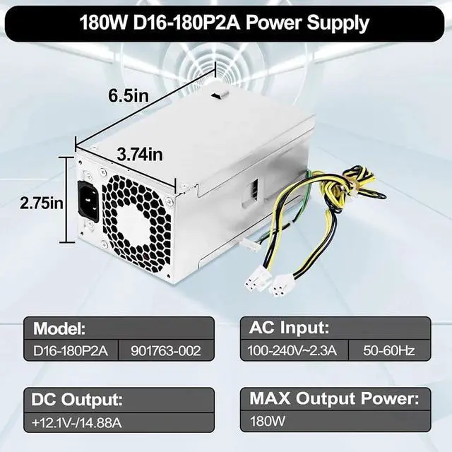 180W RATED POWER This power supply provides the necessary energy to support continuous operations of office desktops and small workstations effectively.