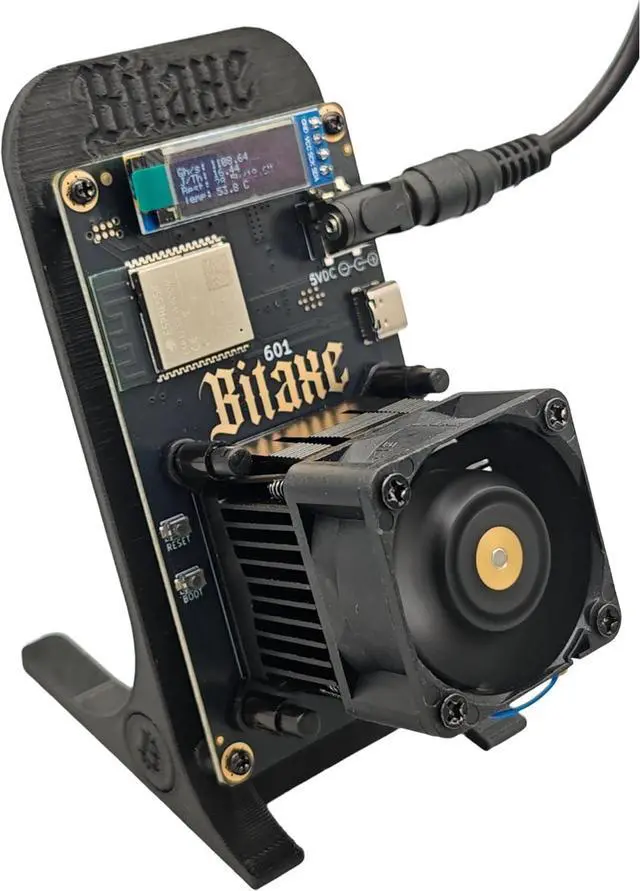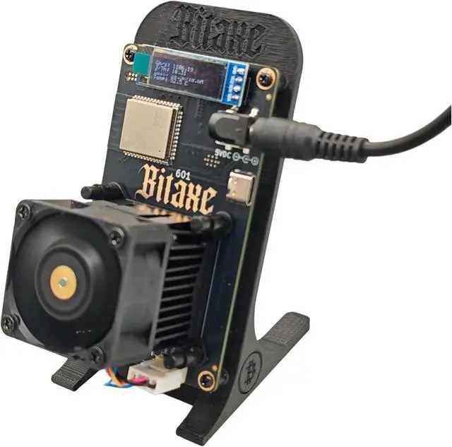 The Bitaxe come with Stand holder,so you can put in your desk as a nice decorate.