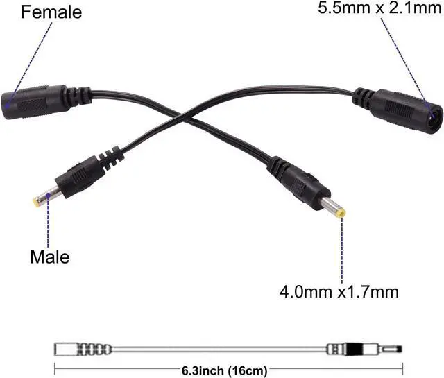 Convert the standard 2.1mm x 5.5mm round power port into 4.0mm x 1.7mm port power supply.