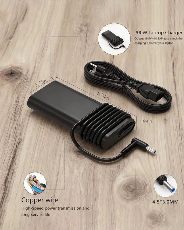 GERVGHS 200W Laptop Charger Compatible with hp victus 15-fb0015nr charger victus 16 gaming laptop omen 15 17 15 15t 15u 17 17t 15-ce000 15-dc000 17-an000 15-cx0000 ZBook 15 G5 ZBook 15 G4 ZBook 15 G3 Series, ZBook 15 17 G3 G4 G5 G6 G7 Series, Pavilion Gaming 15 16 17 Series, OMEN 15 15t, OMEN 17 17t, Envy 15 2020, ZBook Studio G3 G4 G5 G6 G7 G8, ZBook Fury G7 G8, ZBook 15u G3 G4 Series