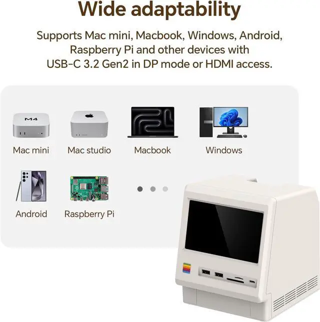 Retro Mac mini Dock with Modern PerformanceClassic Macintosh-inspired design combined with todays technology. More than just a Mac mini dock its a powerful productivity hub that transforms your desktop.