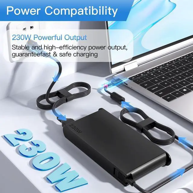 Powerful and Versatile: This Lwuqen laptop charger delivers 20V 11.5A 230W output, perfect for powering Lenovo Legion, ThinkPad, and IdeaPad laptops with its rectangular USB (pin) connector.