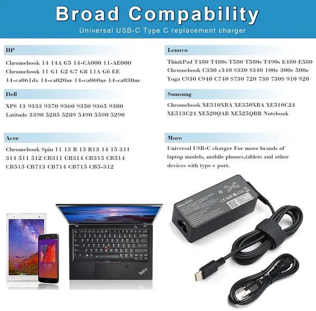 Not all compatible models listed. This 65W USB Type-C charger is a universal charger for more USB-C laptops and smart phones that support power delivery function.