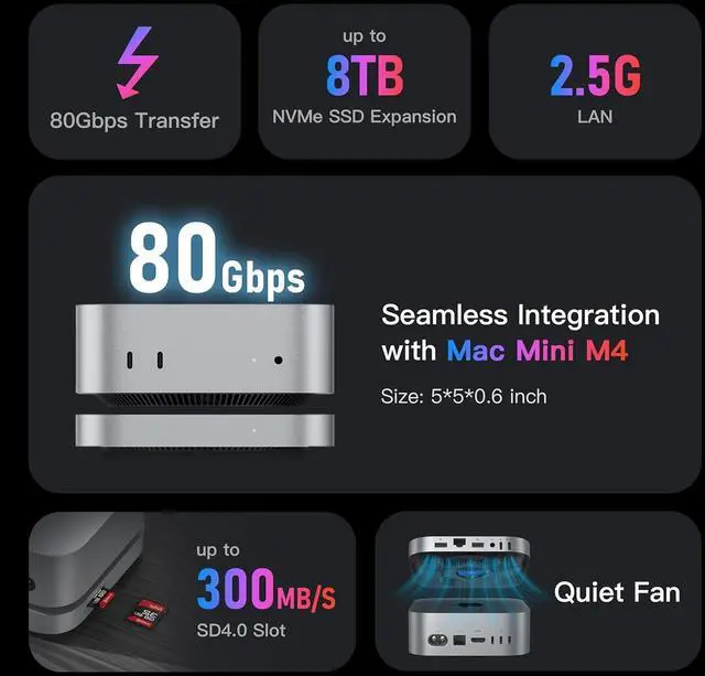Design For: Mac Mini M4/ M4 Pro, or any mini PC, laptop, all-in-one, desktop PC equipped with Thunderbolt 3/4/5 or USB4 ports