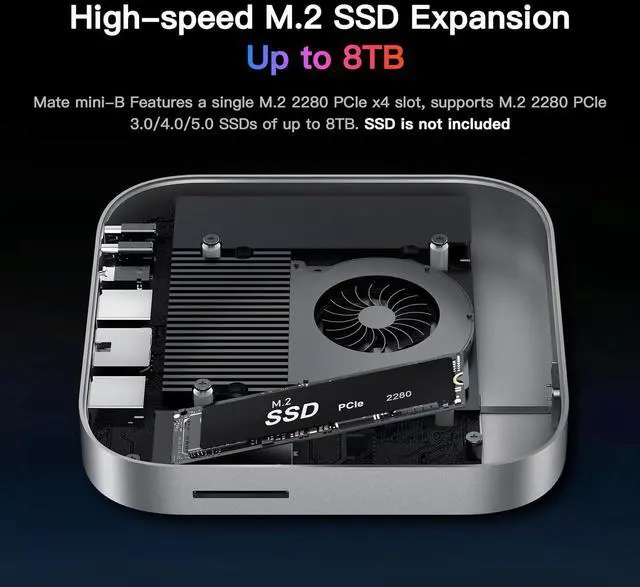 External Interfaces: 1*80Gbps USB-C Port, 2*USB-A 3.0, 1*2.5G LAN, 1*SD4.0 Slot, 1*Type-C (PD3.0), 1*3.5mm Audio Jack