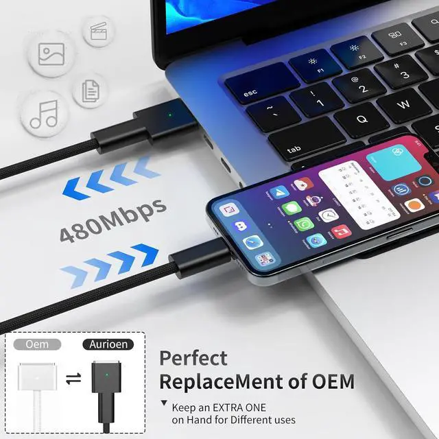 To achieve a charging speed of 140W, use a 140W PD charger. Note: This Gen3 MacBook magnetic adapter supports charging only and does not transfer data.