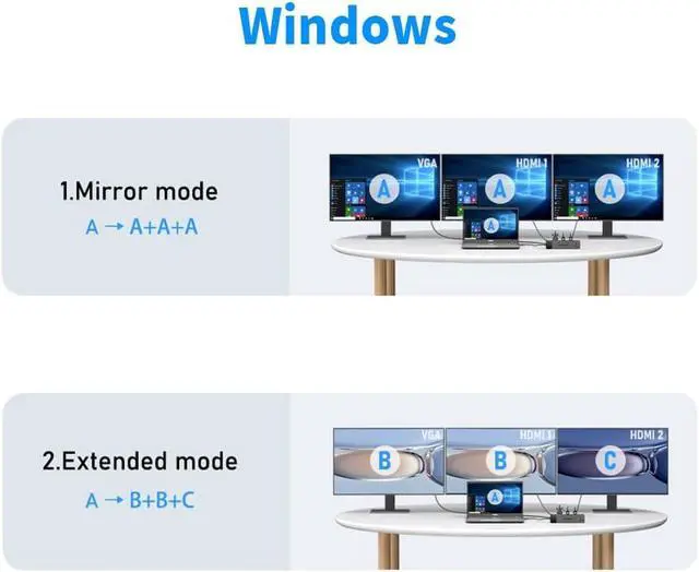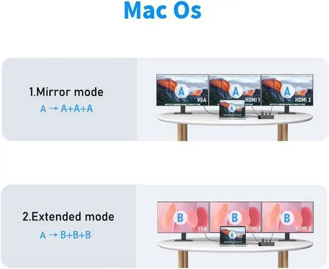 HDMI 4K & VGAHDMI and VGA outputs are available for your display devices (monitors, TVs, projectors) for vivid video synchronization, expand two monitors with the same image using our smart USB hub. Gives you the extensive workspace and flexibility to solve any task. The maximum output resolution is 4K (3840x2160 at 30Hz) via HDMI and 1920 x 1080 at 60Hz via VGA connection.