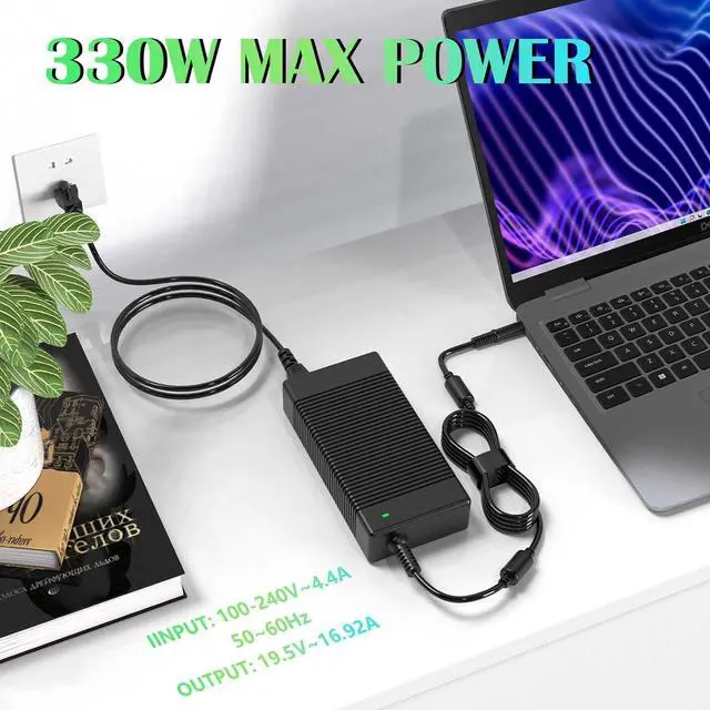 330W 16.92A Laptop Charger Replacement for DELLPower supply: 330W power adapterInput voltage: 100-240V 50-60HzOutput parameters: 19.5V 16.92A 330WConnector Size: 7.4mm*5.0mmBlack Tip Compatibility:Dell G16 7630Alienwere M18x R1 R2 R3, AM18X-6732BAADell Alienwere X51Alienwere M18x-0136 W7HP64, M18X-0143Dell Alienwere X17 R1 R2Alienwere M17 M17x R3 R4Alienwere M16Area-51m R1 R2 P45E P48E P38E P48E001 P48E002 P48E003 P45E001 P45E002 P38E001 P38E002 Gaming Laptop Compatible Models:DA130PM111, DA330PM190, LA330PM190, LA330PM160, R5MR2, XM3C3, CN-0XM3C3, 5X3NX, Y90RR, F0K0N, 331-2429, 320-2269, 450-17280, ADP-330AB B, ADP-330AB D, 332-1432, 450-18980