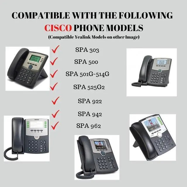 Power Supply Compatible with Cisco Phones - SPA 303, 500, 501G, 502G, 504G, 508G, 509G, 512G, 514G 525G2, CP500, 900, 922, 942, and 962