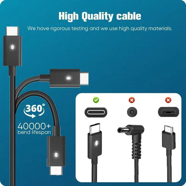 [ ] -- 130W USB C Laptop Charger for New Macbook Pro 16 inch/ 15 inch/ 14 inch/ 13 inch, MacBook Air 13 inch/ 12 inch, ThinkPad/Yoga, Asus ZenBook, HP Spectre, Dell XPS series, Dell Precision series, Dell Latitude series, Dell Inspiron series, Acer, MateBook, Google ChromeBook Pixel; Thunderbolt 3 Port and other usb-c device