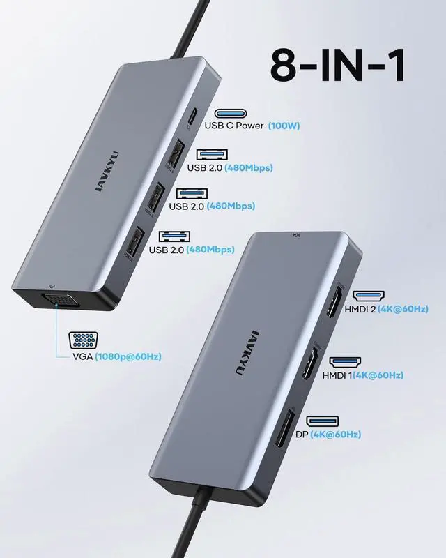 IAVKYU 8-in-1 USB-C Hub: Unlock New Heights of Laptop Expansion
