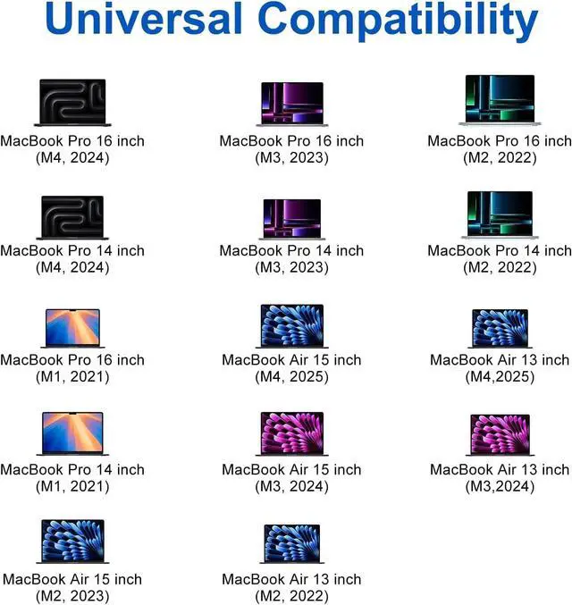 • [Broad Mac Compatibility] Designed for the Mac ecosystem, this charger is widely compatible with: Mac Pro 14 & 16: M1 (2021), M2 (2022), M3 (2023), M4 (2024) models Mac Air 13 & 15: M2 (2022), M3 (2024), M4 (2025) models Models include: A2681, A2941, A3113, A2442, A2992, A2918, A2485, A2458, A2452, A2780