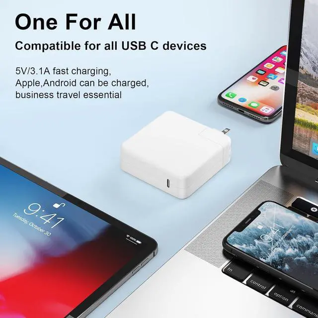 Works with USB C 96W, 70W, 35W, 30W PD Charger Adapter.