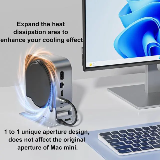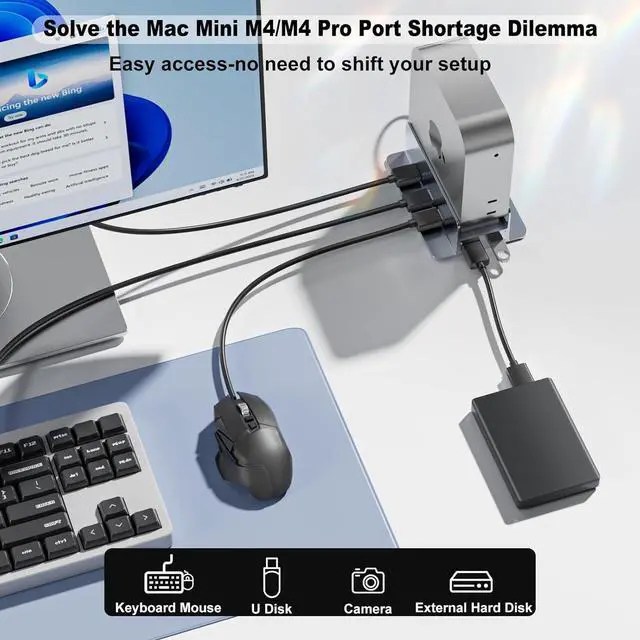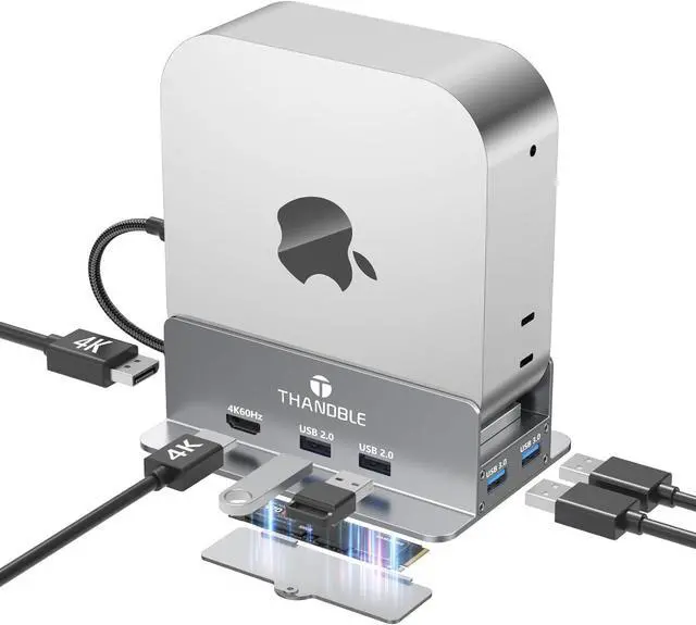 9 in 1 Multi-function Mac mini M4 Dock&StandTHANDBLE solves the problem of insufficient ports exclusively for Mac mini M4, turning your host computer into a workstation by equipping 9 extra ports, including 2 USB A 3.0, 2 USB A 2.0 ports, SD/TF card reader, ensuring smooth multitasking and reliable data transfer, enhancing work efficiency. Unleash the full potential of the Mac mini M4 in different scenarios, ready to respond to any need