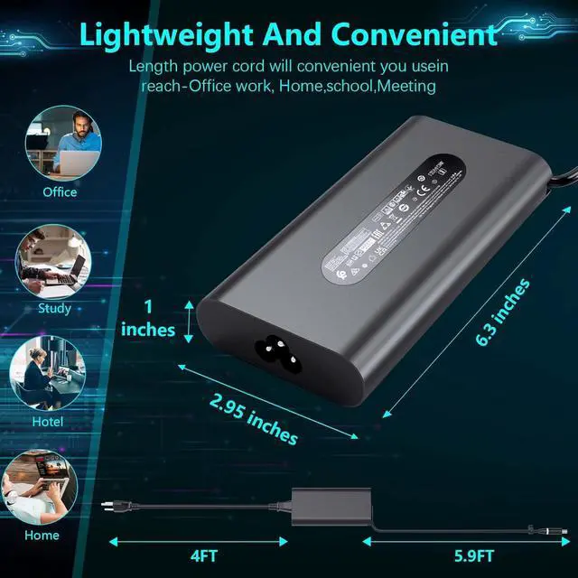 AC Input: 100-120V, 3.5A; 200-240V, 2.5A 50/60Hz; DC Output: 19.5V 12.31A 240W(Max). Connector: 7.4x5.0mm.