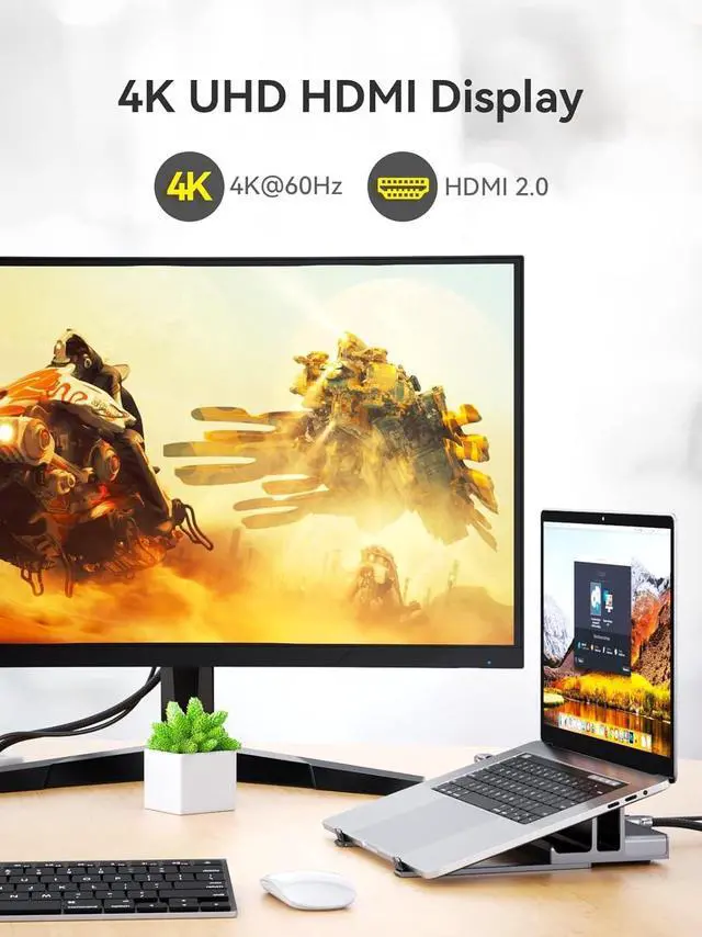 4K@60Hz HDMI OutputUSB C Docking Station for laptop supports up to 4K@60Hz video output, offering a wider field of view and delivering more vivid, realistic visuals. Tips: To achieve optimal 4K@60Hz video output, use an HDMI cable and display that support 4K@60Hz.