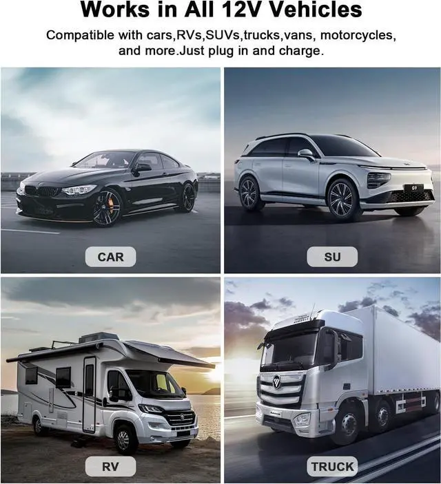 Compact and Travel-Ready - Small yet powerful, this charger is about the size of a phone chargerperfect for your car, travel bag, or RV. Its energy-efficient design helps you stay charged anywhere, anytime.