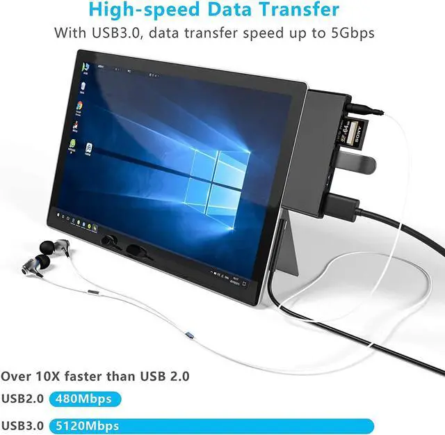 Super Speed USB 3.0/USB C Ports(At Full-Speed)Allow you to connect keyboard, mouse, usb drive, usb hard disks, etc to Surface Go1/Go2/Go3, Up to 5Gbps data transmission speed, down compatible with USB 2.0 and below.