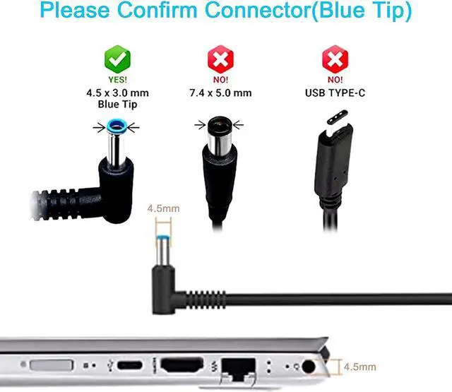 AC Input Voltage : 100~240V 50/60 Hz ,DC output : 19.5V ~ 10.3A 200W. Connector Size: 4.5mm x 3.0mm Blue Tip.