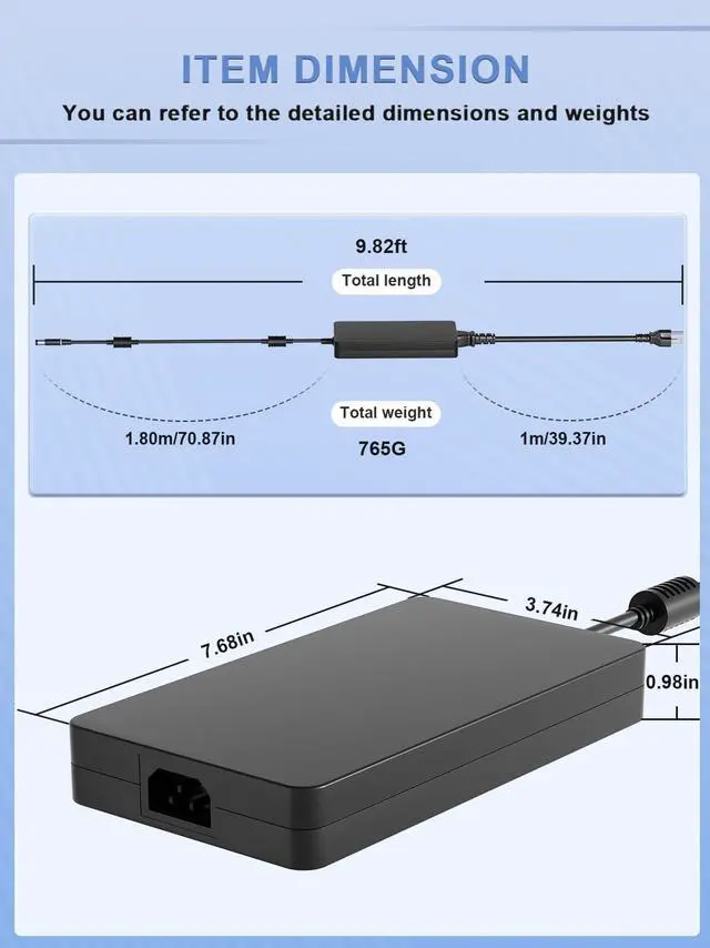 Cargador INPUT: AC/DC 100-240V 50-60Hz; OUTPUT: 19.5V 12.3A. Power: 240W, CONNECTOR SIZE: 7.4mm*5.0mm;(Aslo Compatible With 19.5V 9.23A 180W 150W 19.5V 6.7A Watts: 130 Watts)