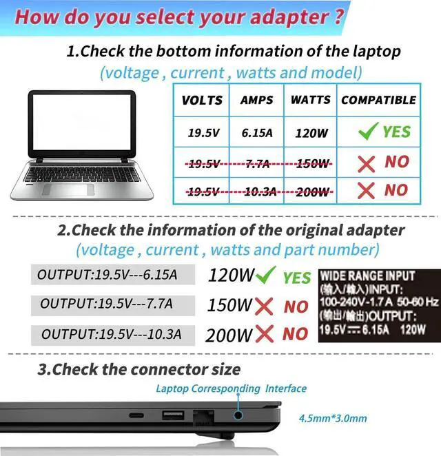 Compatible with: Fit for HP Omen 15-5000 15-5100 15-5200,Fit for HP Pavilion 15 17-ab HP envy 15 17 series,Fit for HP 120W 90W 4.5*3.0mm Blue Tip Laptop Charger