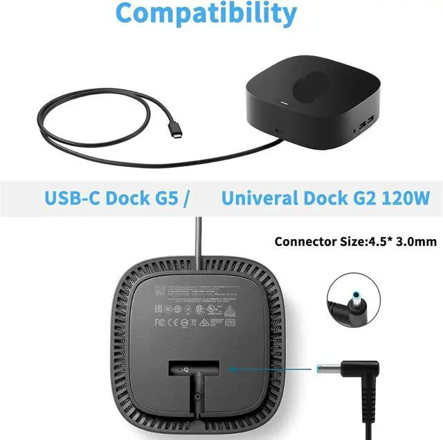 Compatible with: Fit for HP Usb-c Dock G5 5TW10UT 5TW10AA 5TW10AA#ABB 5TW10UT#ABA Power Supply , Fit for HP USB-C/A Universal Dock G2 5TW13AA Power Supply, Fit for HP USB-C G5 Essential Dock 72C71AA#ABA 78L94AA#ABA Power Supply Charger