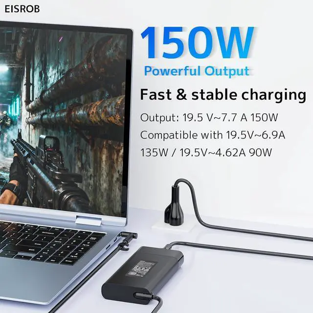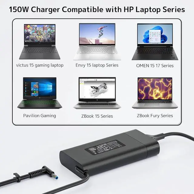 2.Compatibility: 150W laptop charger Fit for HP ZBook 15 15u 15v G2 G3 G4 G5 G6 G7 G8 G9 Studio, ZBook Fury 15 17 G7 G8, 15u G3, 15v G5 OMEN 15 Studio x360 G5 Mobile Workstation Create G7, Pavilion 15 17 15-bc251nr 15-bc220nr 15-dk0068wm, Victus 15 16 Gaming Laptop, Envy 15-ep0000, EliteBook 1050 G1 Laptops