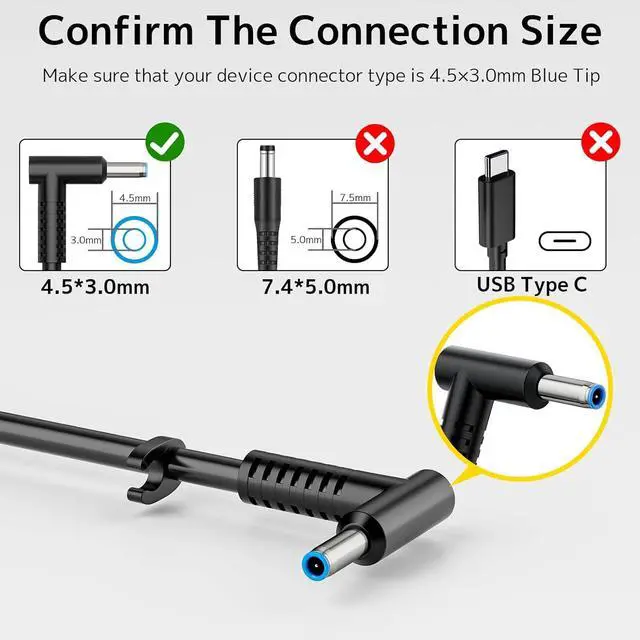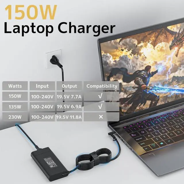 1.Power Parameters: Input: 100-240V 50-60Hz, Output: 150w 19.5V-7.7A / 135W 19.5V 6.9A, Max Power: 150W, Connector Size: 4.5×3.0mm Blue Tip. (Also Compatible with HP 135W Chargers)