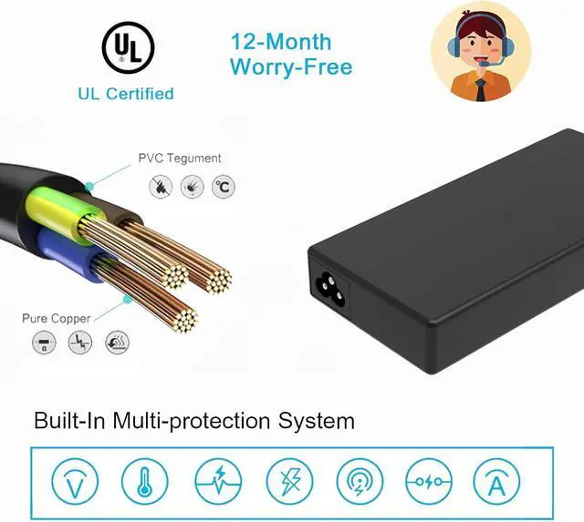 Safe & Certified: CE/FCC/ROHS Certified for Security. With the international quality certification authority. Ac adapters manufactured with the high quality materials and include protection against short circuiting, overvoltage, overcurrent and internal overheating. Designed with high temperature resistant, flame retardant and fire-resistant materials, all our products provide ultimate protection for your devices.