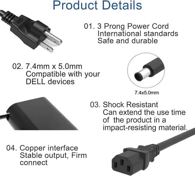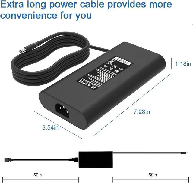SpecificationsDell 240W Laptop Charger - Input: 100-240V 50-60Hz. Output: 19.5V 12.3A 240W(Compatible with 19.5V 9.23A 180W). Connector Tip: 7.4mm*5.0mm.