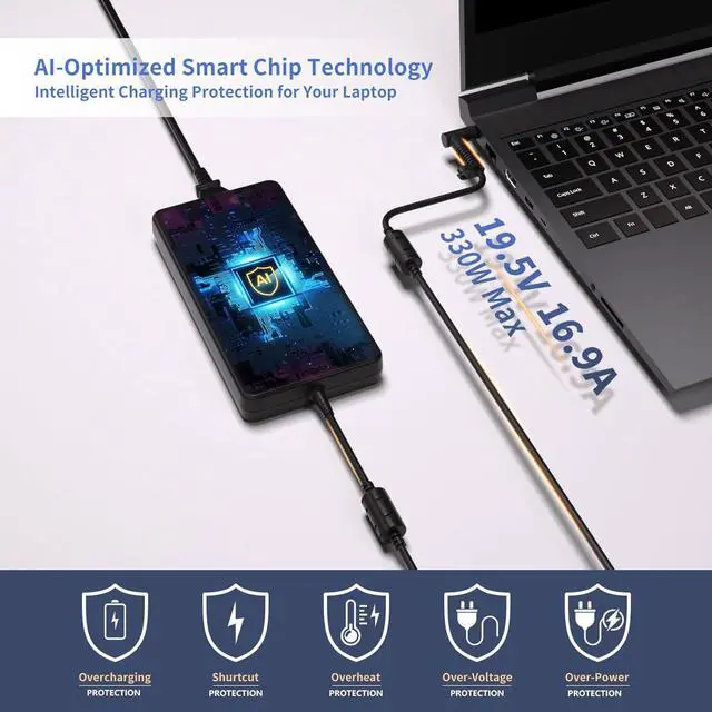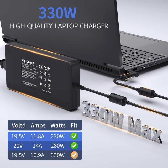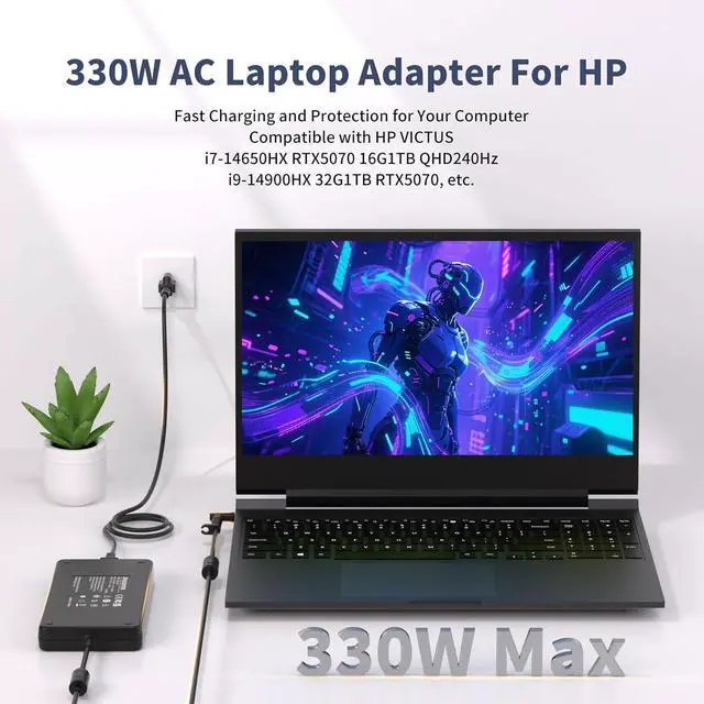 Speed & Safety: This laptop charger delivers up to 330W power output (19.5V/16.9A) with backward compatibility for 20V devices (280W/230W). Certified by RoHS, UL, and FCC, it ensures rapid, secure charging for your HP OMEN laptop, letting you swiftly resume work or gaming