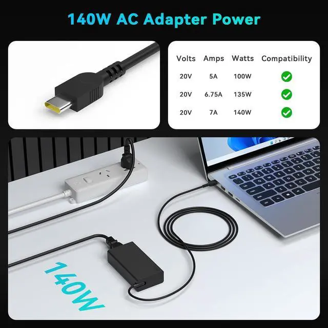 Compatible with Lenovo IdeaPad Charger140W AC Adapter Compatible With Lenovo IdeaPad Pro 5 14AHP9 14APH8 14ARP8 14IMH9 14IRH8 16AHP9 16APH8 16ARP8 16IMH9 Ideapad 5 Pro 14ITL6 14ACN6 14ARH7 14IAP7 16ACH6 16IAH7 16ARH7 16IHU6 Ideapad 5 14IIL05 14ARE05 14IAL7 14ITL05 14ALC05 14ABA7 15IAL7 15ABA7 15ALC05 IdeaPad 5 2-in-1 14AHP9 14IRH9 14IRU9 16AHP9 16IRU9, ideapad S540 720S S940 730S, IdeaPad Slim 9 14ITL5 Slim 7 Pro 14IHU5 Slim 7 Carbon 14ACN6 Slim 7 14ITL05 14IIL05 14ARE05 15IIL05 15ITL05 Slim 5 14IMH9 14IRL8 14AHP9 14IAH8 14IRU9 14ABR8 14IRH10 15IRU9 15IRH9 16IRU9 16IAH8 16ABR8 16AHP9 16IMH9 16IRL8 16IRH10 16AKP10