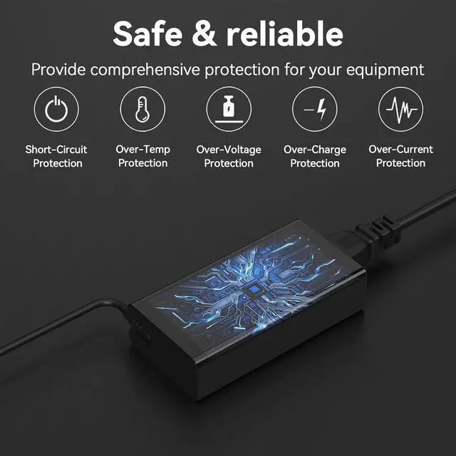 SafetyThe charger has an electronic safety certification that complies with the appropriate standards, and the built-in laser soldering technology ensures that the port section will not break. The longer SR break-resistant design enhances the durability of the cable. With a compact design, the charger is easy to carry and store. Saves more space for power strips, ideal for home, office, and travel. With increase in operating frequency, an innovative stacked design, and an upgraded circuit board structure, new technology makes our latest charger smaller without sacrificing a drop of power. Power up your laptop and give you the productivity & flexibility you need quickly