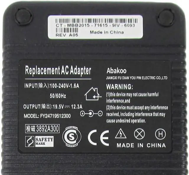 Input: 100-240V, Output: 19.5V~12.3A, DC connector: 7.4mm*5.0mm