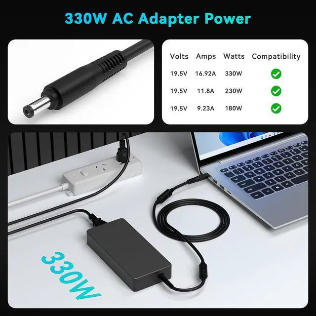 Compatible with Acer Gaming Laptop Charger SpecificationInput: AC 100-240V 50-60Hz, Output: 19.5V 16.92A 330W (Compatible 280W 230W 180W). Connector size: 5.5*1.7mm. Compatible with P/N: ADP-330CB B, PA-1331-99, A20-330P1A, A330A012P, ADP280DB B, A21-280P1A, A280A010P