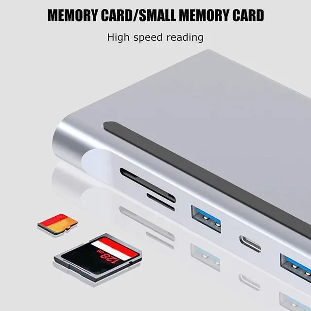 This hub support 3.5mm audio output and dual card slots of memory card/small memory card