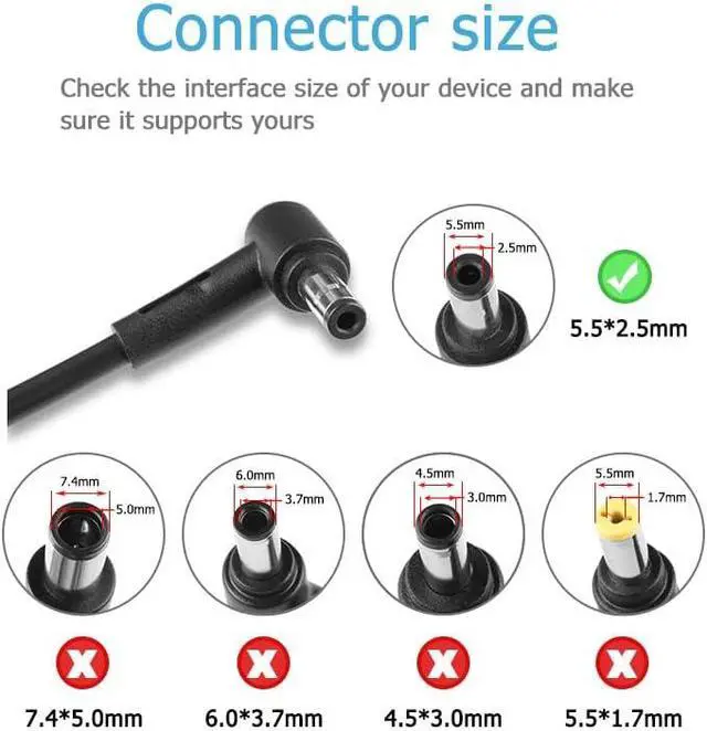 Delta 120W charger. Port size: 5.5 * 2.5mm. Input: 100-240 V, 50/60 Hz; Output: 19.5 V 6.15 A. Delta 120W Notebook Laptop Charger AC Power Supply.