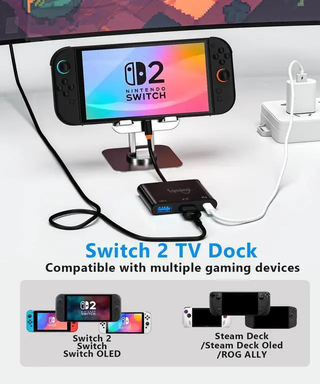 Compatibility - No driver required for most hdmi devices except for the NS2 use the V21The latest official version restricts the use of third-party docks.Contact after-sales support for immediate resolution.,This Switch 2 dock offers wide compatibility with various devices,including laptops,tablets,smartphones,MacBook pro,MacBook Air,XPS,Switch2&Switch1,Steam,this USB C Adapter supports operating systems:Windows,ChromeOS,Linux,and Mac OS X 10.5 or higher portable and lightweight that make you enjoy your latest game console/work easily anywhere and anytime.